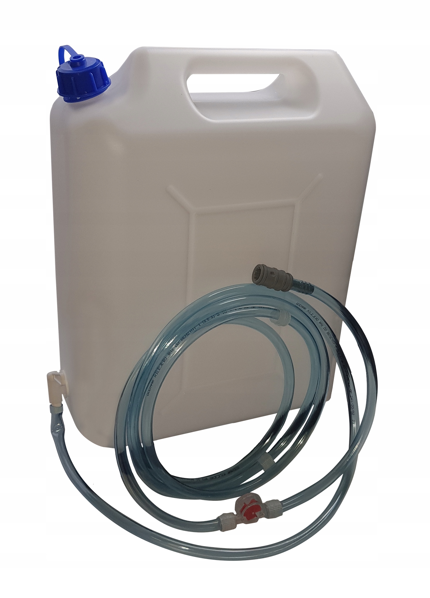 Zbiornik 20l na wodę z plastikowym kranikiem i kompletnym przyłączem do uzupełniania wody